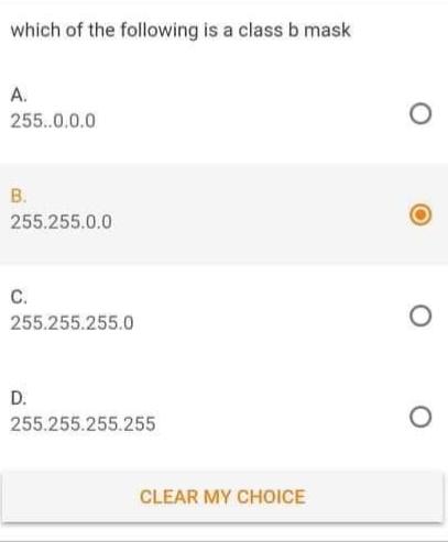 Solved Which Of The Following Is A Class B Mask A 255 0 0 0 Chegg Com